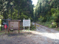 そんな事をやりながら暖かな春の日差しを浴びてのんびりと砕石場の近くまでやって来た。 ここの砕石場は軽石を生産していて無造作に積まれて道の端に置いてある。無条件に車の進入を認めたら根こそぎ持っていかれてしまうので鎖に鍵をかけるのも無理は無い話である。 もう一つ林道の端が高い柵で区切られている。柵の中にはスギ、ヒノキが植えられていてシカやイノシシから守るための措置なのだろうか。 砕石場を抜けると林道が合流している。やはりここまで車でこれるんじゃないかと思いながら登山口まで来ると車が駐車されている。 やっぱりそうだったのだ、ここまで2時間30分もかけて歩いて来た我々は一体何だったのか、ちょうど下って来たご婦人に聞いてみると案の定林道を車で登って来たと言っている。